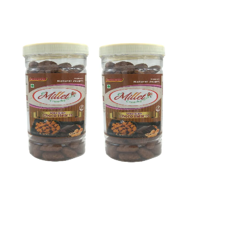 Little Millet Choco Hearts, a delightful snack that brings together the nutritional benefits of Little Millet, the exotic taste of Chocolate, and the sweetness of natural sweeteners. Crafted from finely ground little millet flour, our sweet pops are sweetened with natural ingredients to create a delicious and satisfying treat, making it a guilt-free indulgence that's perfect for satisfying your sweet cravings. Enjoy our Little Millet Choco Heart Sweet Pops as a wholesome snack on-the-go, a midday pick-me-up, or a tasty dessert alternative.